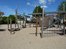 Ausstattung: Holzklettergerät mit Rutsche, Streetballkorb, Sandkiste, Viererwipper, Balancierstrecke, Hängekarussell, Fussballtor
